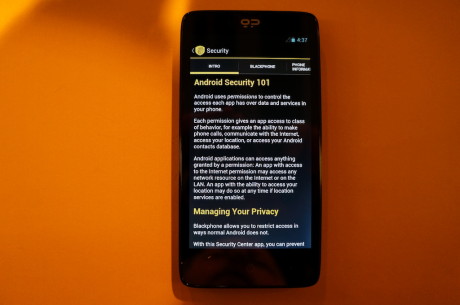 Med PrivatOS, den modifiserte versjonen av Android som er Blackphones operativsystem, gir utviklerne makten tilbake til brukeren. Du kan for eksempel selv administrere ned til minste detalj hvilke rettigheter hver app skal ha: I det såkalte Blackphone Security Center kan du se hvilke apps som har tilgang til hvilken informasjon, og følgelig skru tilgangen av eller på. Og dette skjer uten at appen oppdager det.
