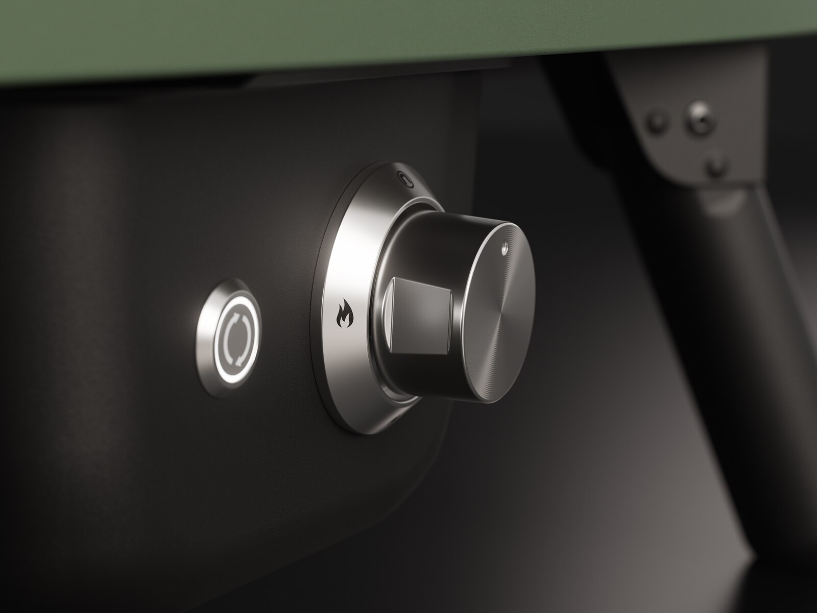 Ovnen har en roterende pizzastein og en C-formet brenner for jevn steking. Ovnen varmes opp på 15 minutter, og det skal ikke ta mer enn 90 sekunder å få en perfekt stekt pizza.