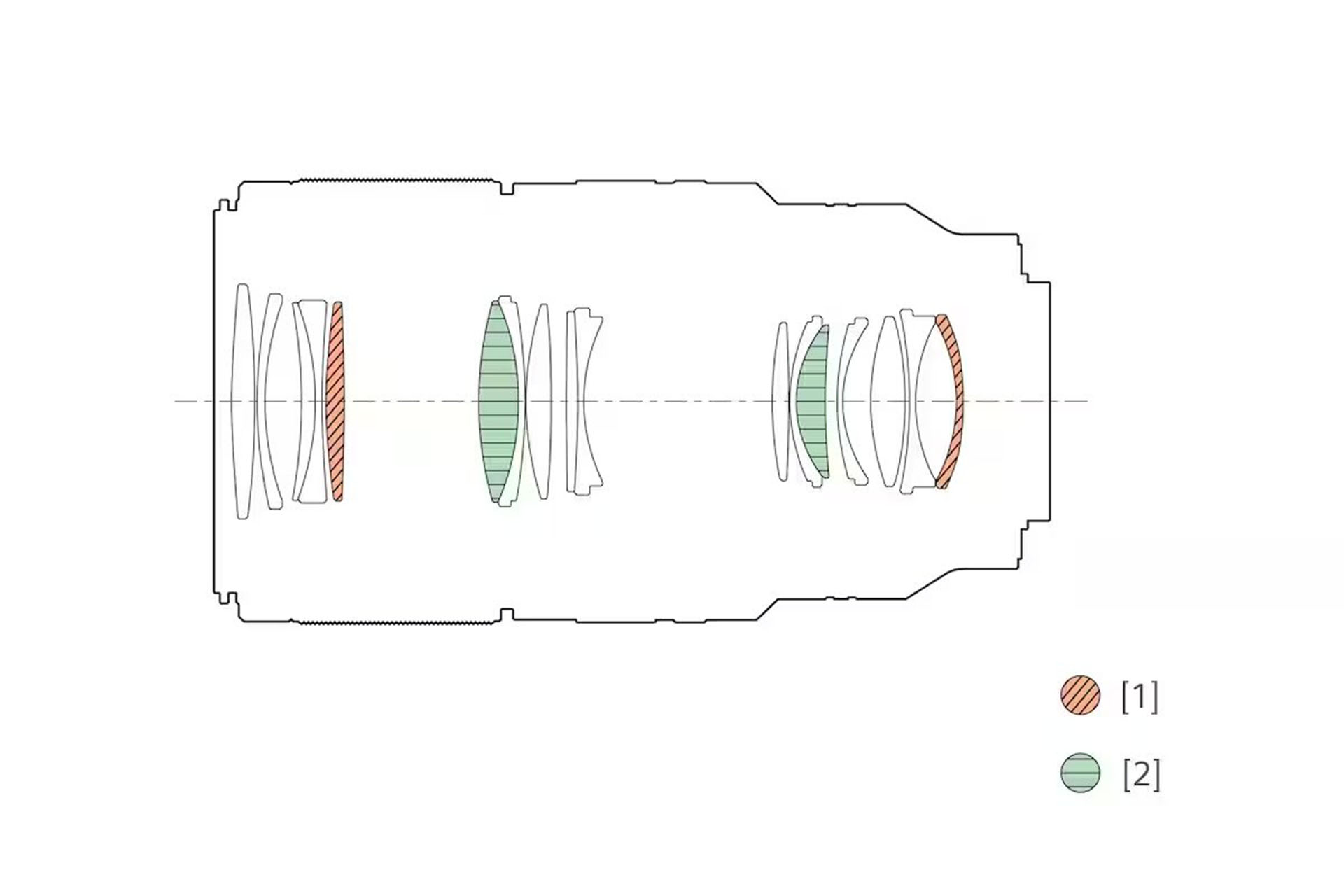 [1] Asfæriske elementer [2] ED-glass Foto: Sony