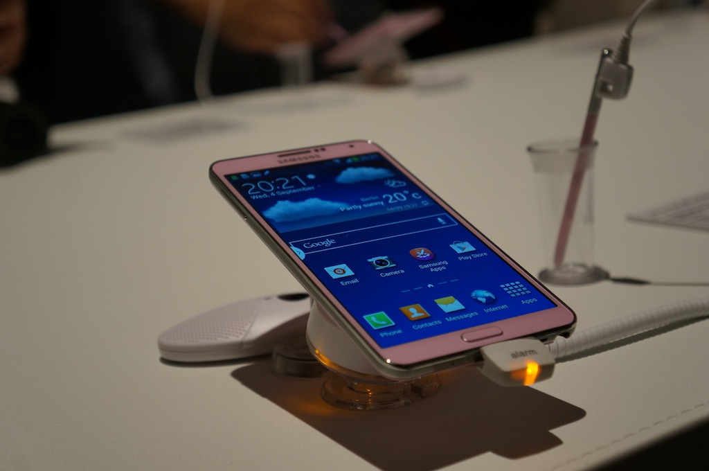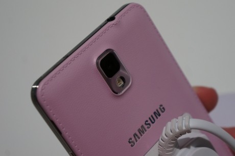 Galaxy Note 3 kommer i svart, hvitt og….. rosa! Skinnbekledningen på baksiden er vi dog glade for.