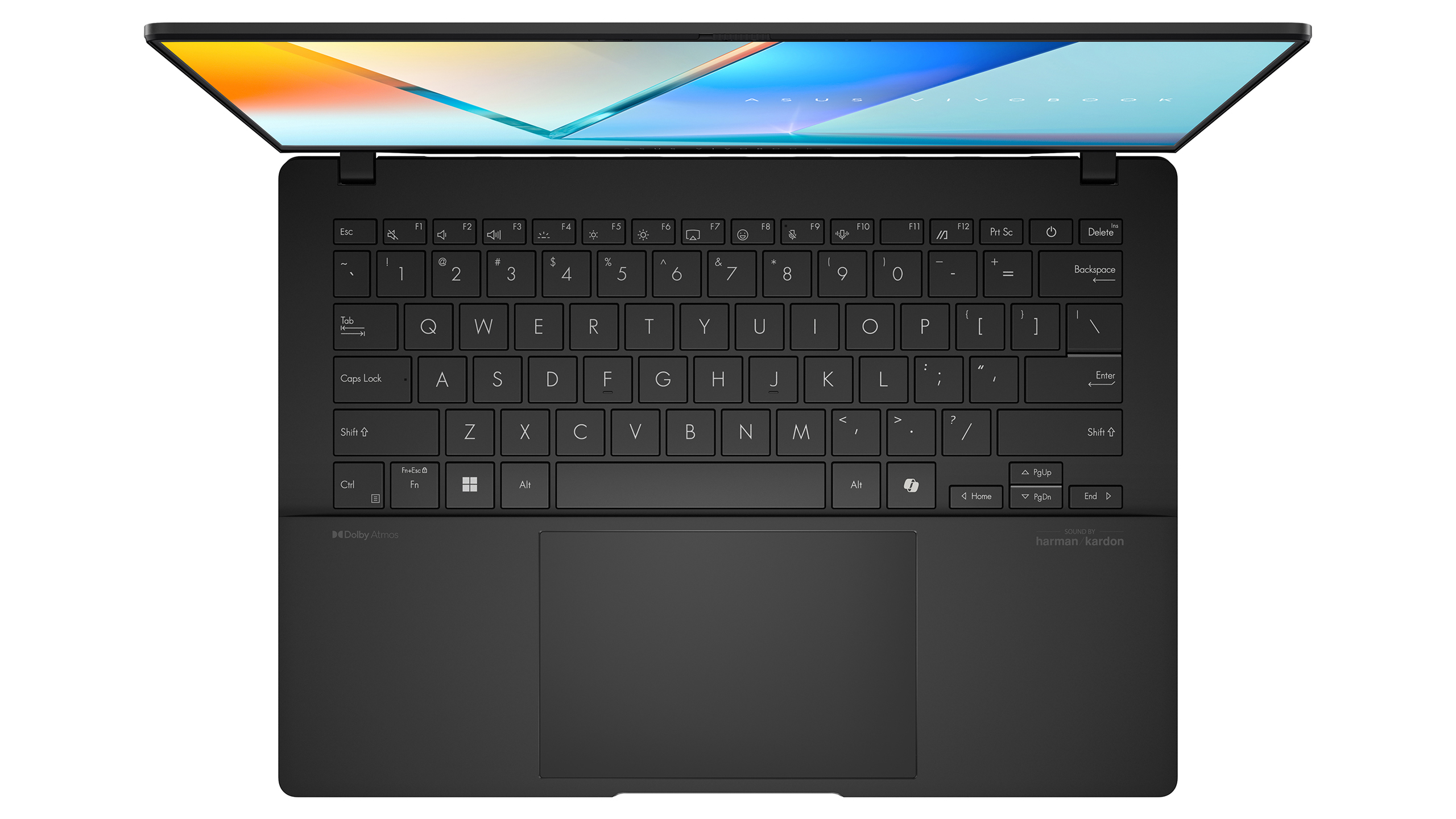 Det første som fanger øyet, er skjermen. Her leverer Asus varene med et 14-tommer OLED-panel i 3K-oppløsning (2880 x 1800 piksler) og med en oppdateringshastighet på 120 Hz. Det gir et knivskarpt bilde med intense farger og svart som er komplett fravær av lys. Nettopp det OLED-teknologien er kjent for. Lysstyrken på 600 nit er rikelig til de fleste situasjoner. Hvor fjorårets Vivobooks hadde OLED-skjerm i 16:9-format, har de nye maskinene 16:10-skjerm som gir litt ekstra plass i høyden. Touch-funksjonalitet ville vært prikken over i-en, men til denne prisen må det være kompromisser.