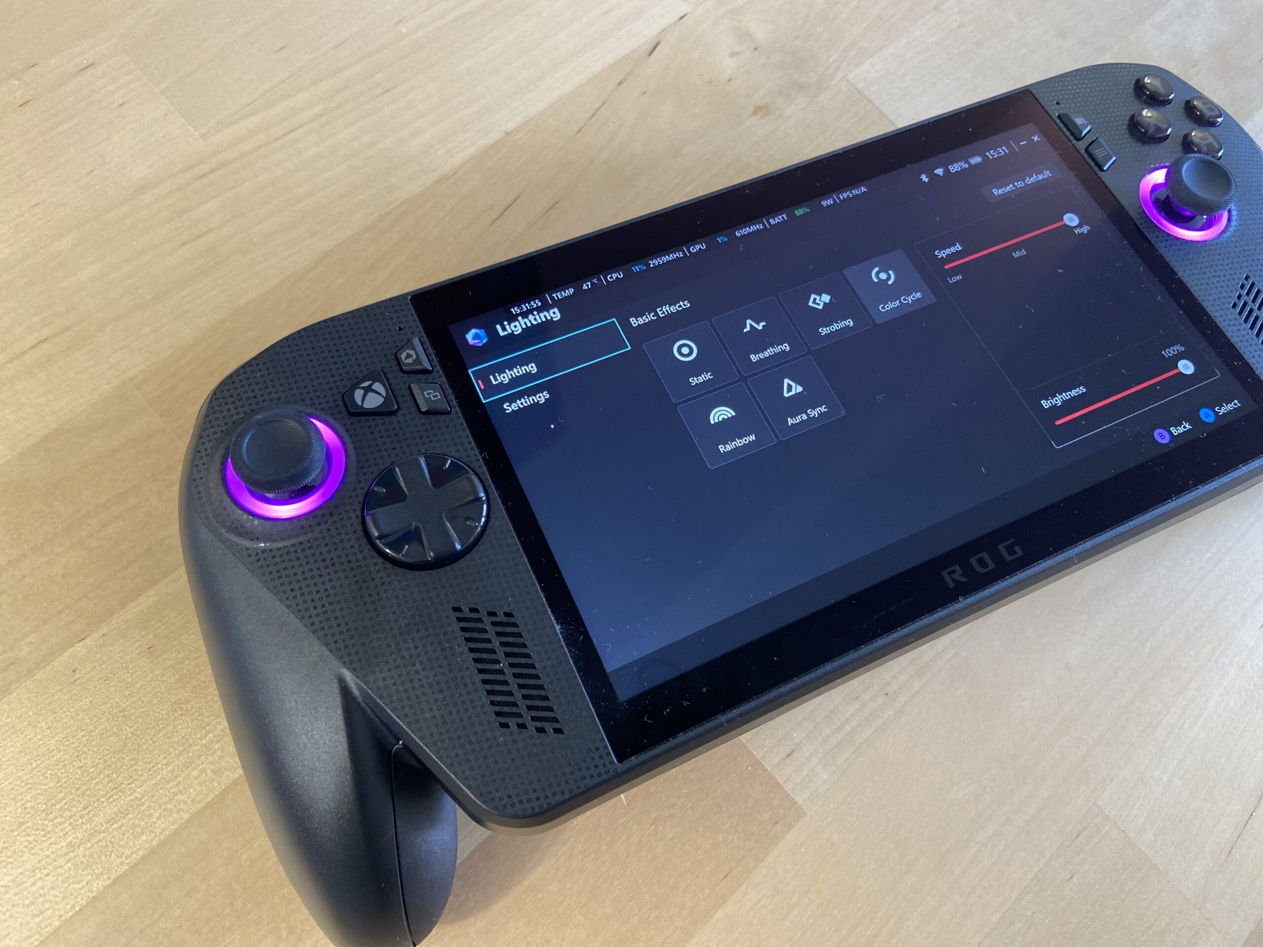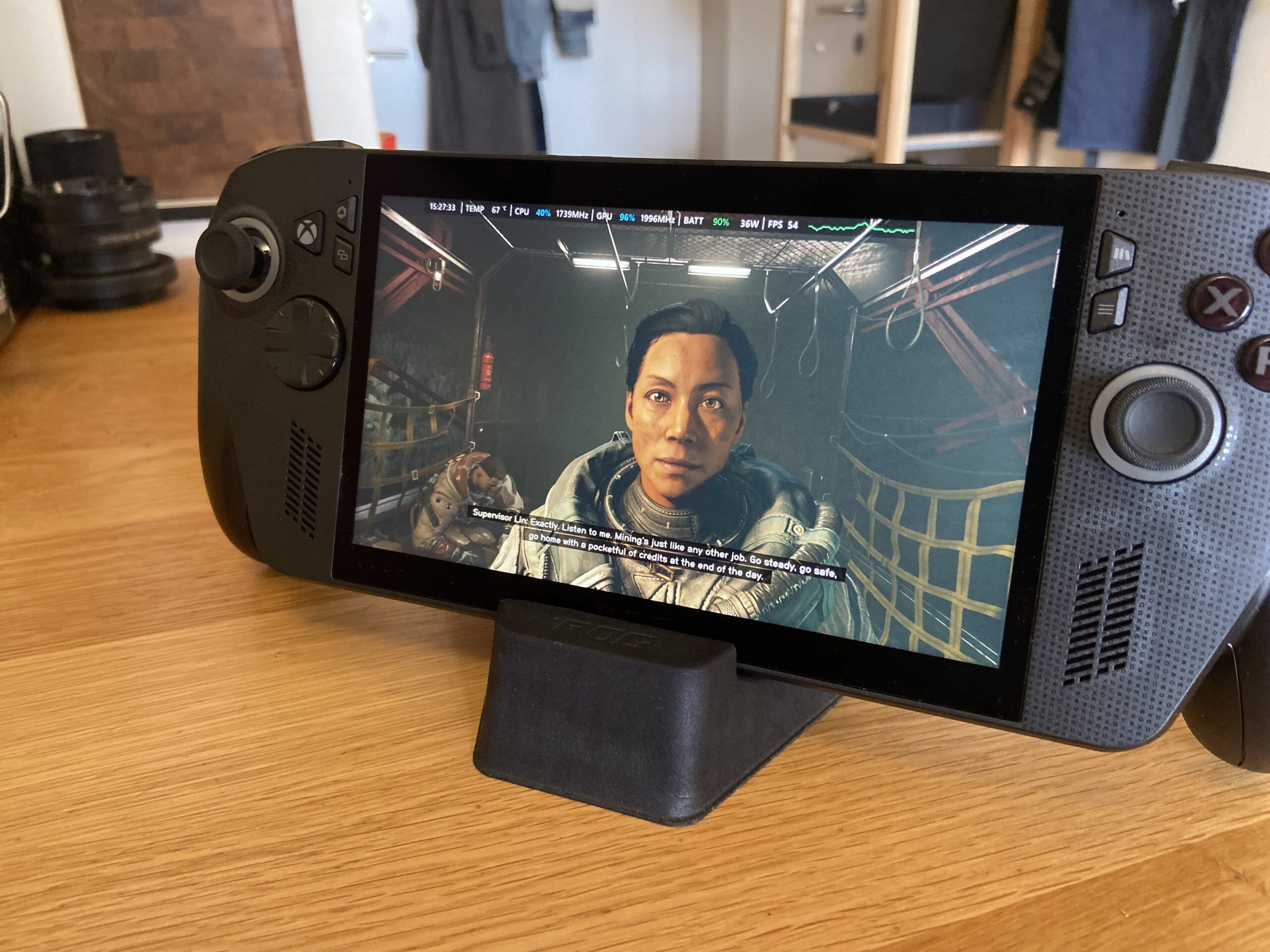 Drar du ut kontakten midt i et intenst Far Cry 6-spill (medium grafikkinnstillinger og 1080p-oppløsning), tar 30 minutters intens spilletid 21 prosent av batteriet, noe som gir en samlet batteritid på ca. 2 timer og 22 minutter. 22 minutter lenger enn den gamle Ally X. Slett ikke dårlig når man tenker på at Ally X nettopp ble rost for den økte batteritiden, som er de håndholdte konsollenes største akilleshæl.