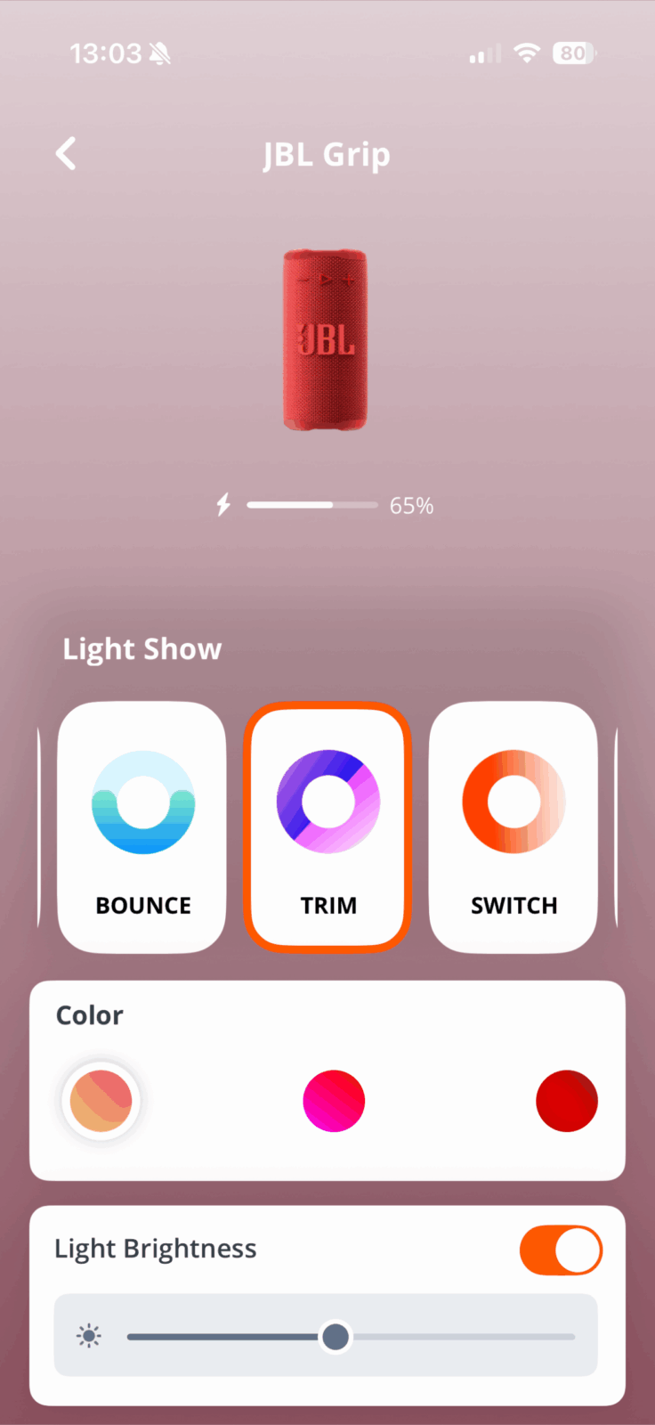 Høyttaleren kan pares i stereo med en ekstra høyttaler, og den støtter Auracast, som betyr at man kobler sammen flere høyttalere til samme kilde. Grip, som finnes i flere farger, har en lysstripe på baksiden, som man kan slå av. Stemningslyset kan styres fra appen, hvor man kan velge mellom flere ulike farger, pulserende lys, og som nevnt, slå av lyset helt.