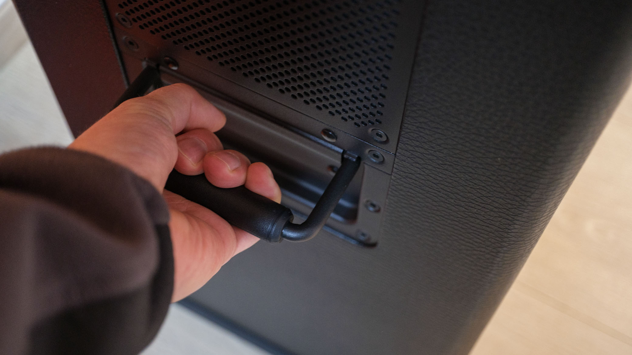 Et hendig uttrekkbart håndtak, og store hjul, gjør det enkelt å flytte på høyttaleren som veier tett på 24 kilo. Skylden for den høye vekten, må nok tilskrives alle høyttalerelementene Marshall har dyttet inn i Bromley 750.
