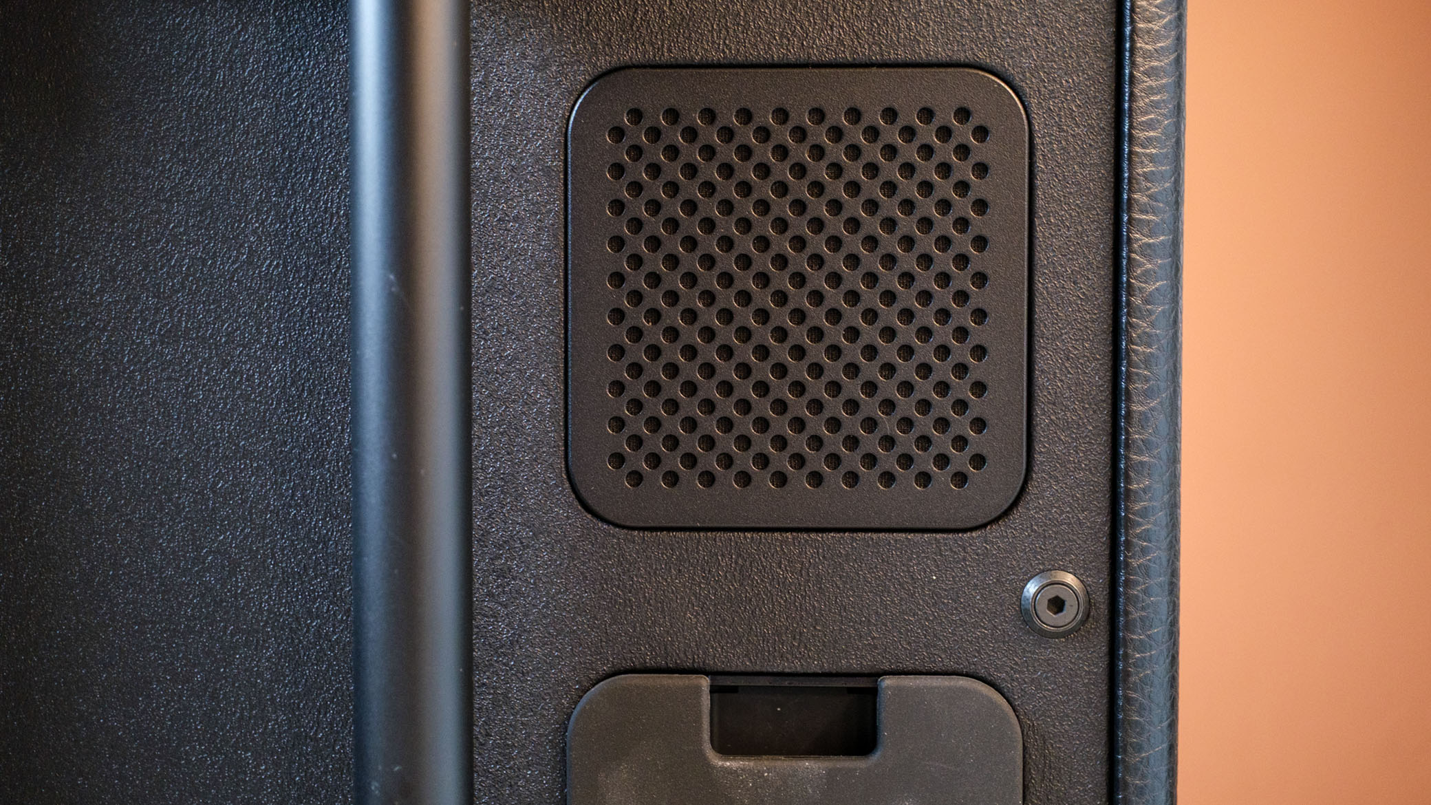 Med to 100 W klasse D forsterkermoduler til bassene, 2 x 50 W til mellomtonene på sidene, og 4 x 50 W til diskantene foran, bak, og på toppene, er det ikke rart høyttaleren spiller så enormt høyt.