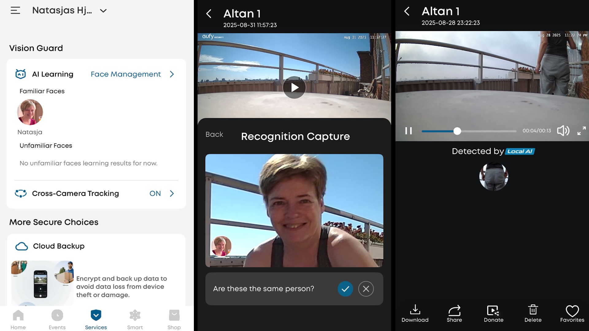 Overordnet har eufys AI BionicMind (fortsatt) vanskelig for å skille mellom forskjellige former. Flere ganger ble ansiktet mitt ikke gjenkjent. Andre ganger ble jeg som person forvekslet med et upersonlig utsnitt av min bakende i treningsbukser. Ikke videre flatterende.